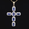 Erleben Sie hier einen phantastischen Kreuz Anhänger aus 375/- Gelbgold mit Tansanit und Zirkon Edelsteinen.